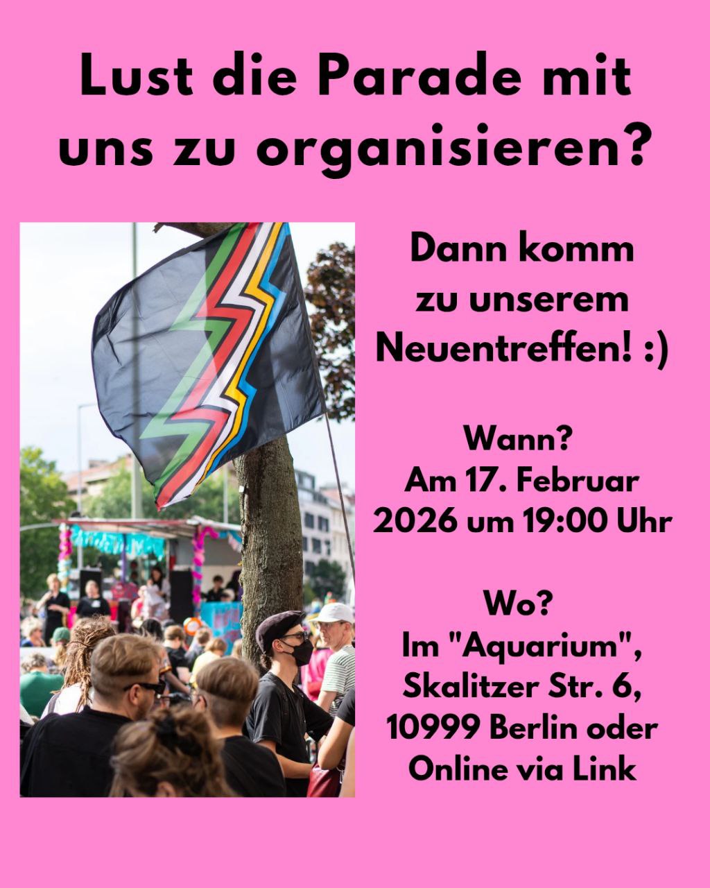 Lust die Parade mit uns zu organisieren? Dann komm zu unserem Neuentreffen!