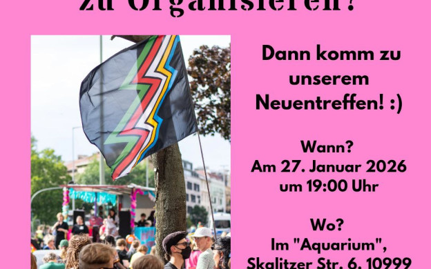 Lust die Parade mit uns zu organisieren? Dann komm zu unserem Neuentreffen! Hallo liebe Leute, auch im Sommer 2026 wollen wir eine "behindert und verrückt feiern - Pride Parade" in Berlin organisieren. Damit das klappt, gibt es viel zu tun! Hast du Lust mitzumachen? Wir freuen uns über neue Menschen, die mithelfen wollen.✨ Wir laden dich zu einem Treffen ein, um unser Bündnis kenn… weiterlesen